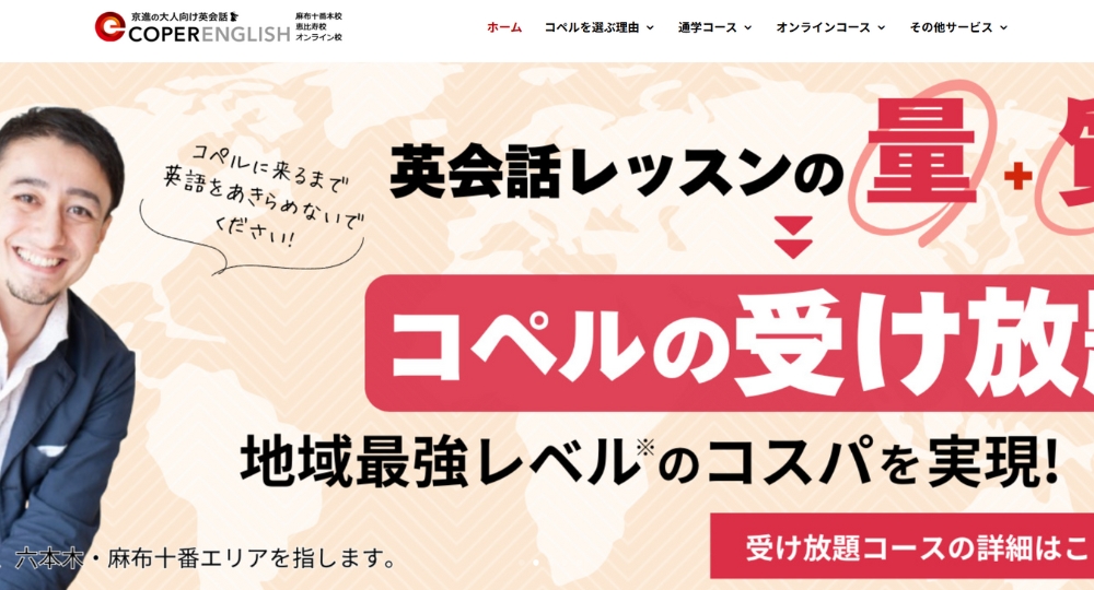 コペルは恵比寿にある英会話教室。英会話を実践的に学べるレッスンを9,350円(税込)から受けることができます。初心者にも日常会話から丁寧に教えてくれるので、英会話に興味のある人はぜひ公式HPを見てみてくださいね
